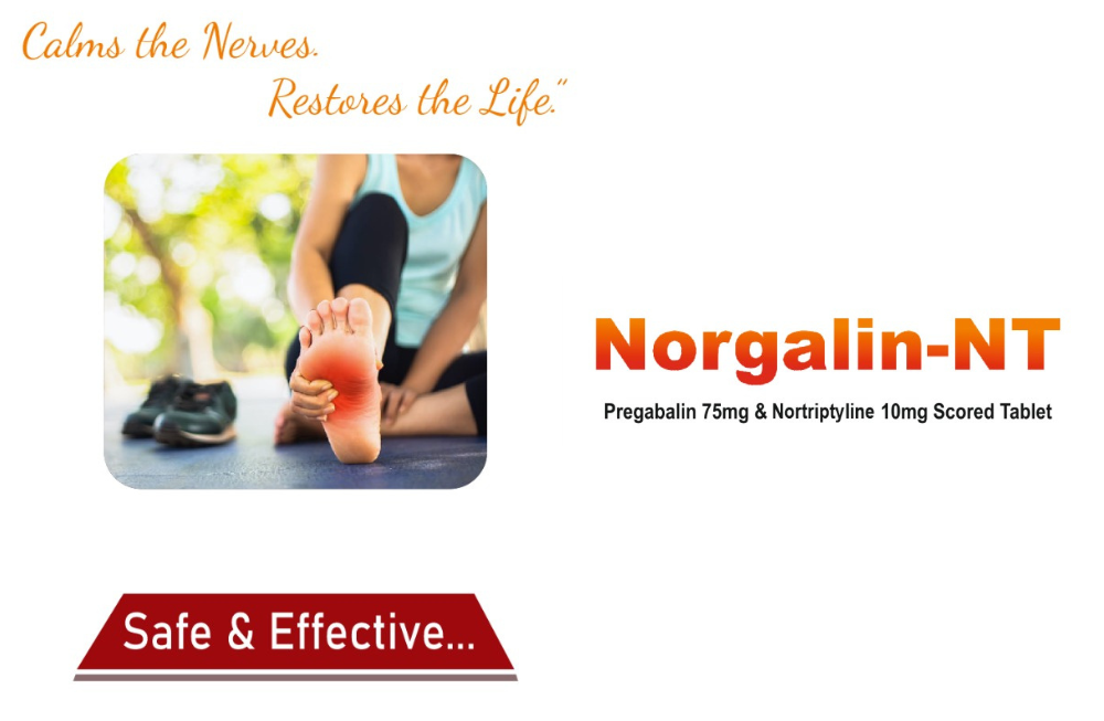 Combination tablet for neuropathic pain relief, containing Pregabalin 75mg and Nortriptyline 10mg for effective nerve pain management.