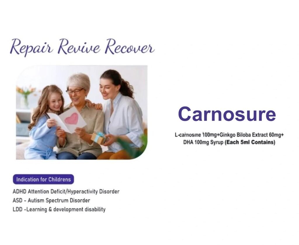 Brain health syrup with L-Carnosine, Ginkgo Biloba, and DHA to enhance memory, focus, and overall cognitive performance.